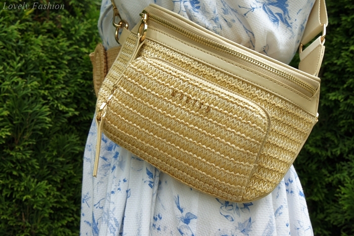 Dobry wieczór kochani! :) Tym razem prezentuję Wam kolejny letni zestaw. Jego podstawę stanowi wiskozowa sukienka o kroju babydoll, której kolorystyka bez wątpienia kojarzy się z Grecją. Początkiem tego sezonu można było właśnie zauważyć biało-niebieskie połączenia, czy motywy na witrynach wielu popularnych sieciówek. Ja do wspomnianych barw dodatkowo przemyciłam złote, drobne akcenty, a także akcesoria z plecionki, jak pasek, czy torebka nerka. Mam nadzieję, że Wam się podoba. Życzę dobrej i spokojnej nocy! :)